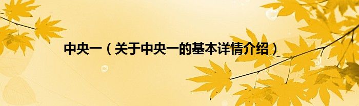 本文关于中央一的基本详情介绍就讲解完毕,希望对大家有所帮助。