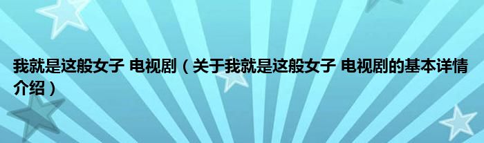 本文关于我就是这般女子 电视剧的基本详情介绍就讲解完毕,希望对大家有所帮助。