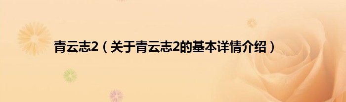 本文关于青云志2的基本详情介绍就讲解完毕,希望对大家有所帮助。