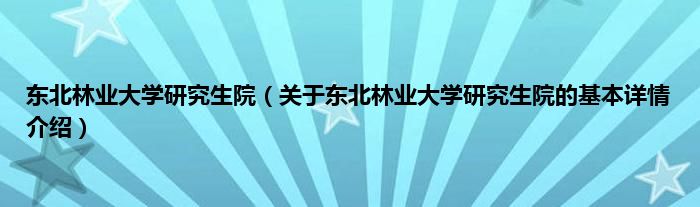 本文关于东北林业大学研究生院的基本详情介绍就讲解完毕,希望对大家有所帮助。
