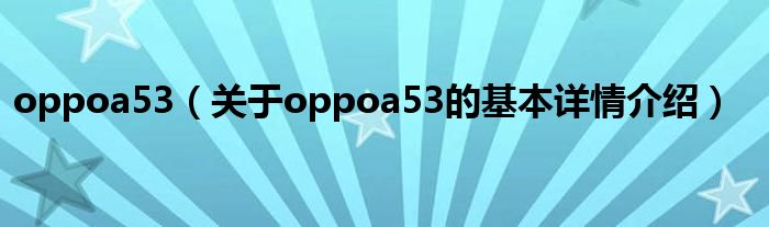 本文关于oppoa53的基本详情介绍就讲解完毕,希望对大家有所帮助。