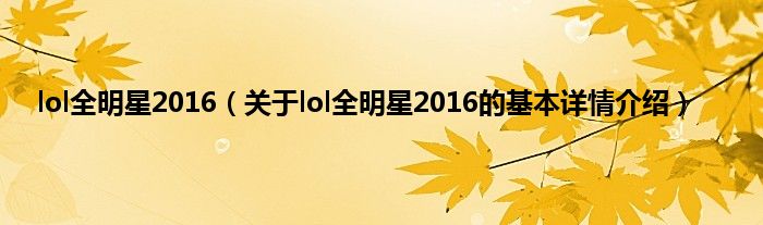 本文关于lol全明星2016的基本详情介绍就讲解完毕,希望对大家有所帮助。