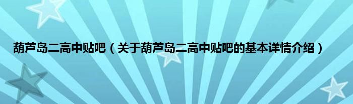 本文关于葫芦岛二高中贴吧的基本详情介绍就讲解完毕,希望对大家有所帮助。