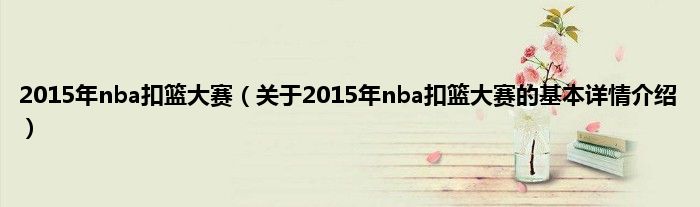 本文关于2015年nba扣篮大赛的基本详情介绍就讲解完毕,希望对大家有所帮助。