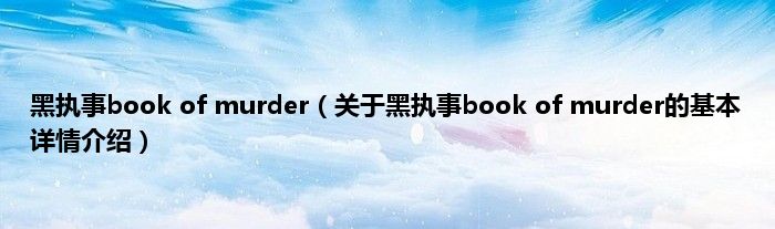 本文关于黑执事book of murder的基本详情介绍就讲解完毕,希望对大家有所帮助。