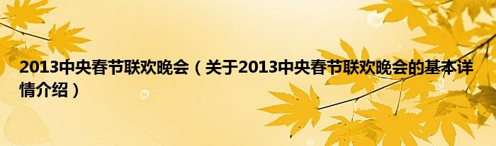 本文关于2013中央春节联欢晚会的基本详情介绍就讲解完毕,希望对大家有所帮助。