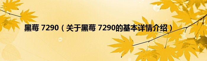 本文关于黑莓 7290的基本详情介绍就讲解完毕,希望对大家有所帮助。
