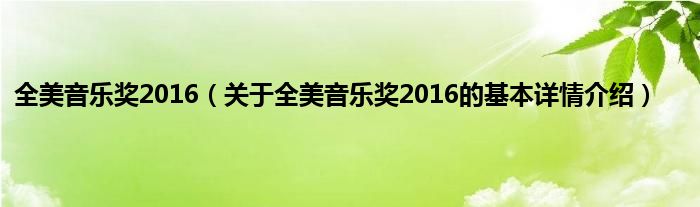 本文关于全美音乐奖2016的基本详情介绍就讲解完毕,希望对大家有所帮助。