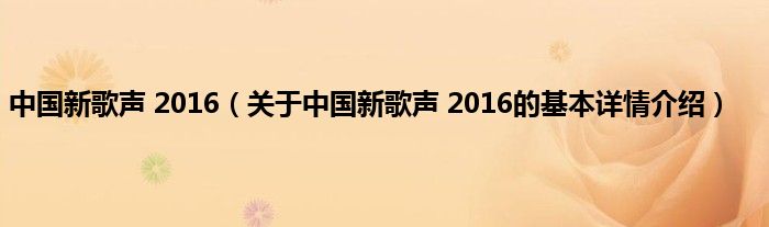 本文关于中国新歌声 2016的基本详情介绍就讲解完毕,希望对大家有所帮助。
