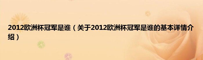 本文关于2012欧洲杯冠军是谁的基本详情介绍就讲解完毕,希望对大家有所帮助。