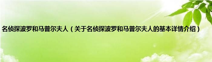 本文关于名侦探波罗和马普尔夫人的基本详情介绍就讲解完毕,希望对大家有所帮助。