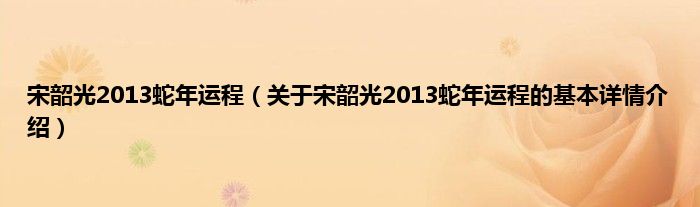本文关于宋韶光2013蛇年运程的基本详情介绍就讲解完毕,希望对大家有所帮助。