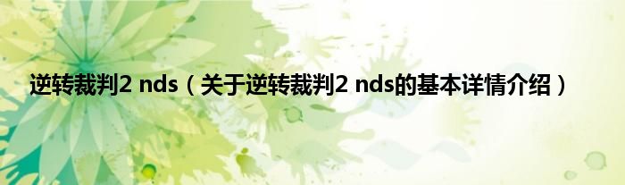 本文关于逆转裁判2 nds的基本详情介绍就讲解完毕,希望对大家有所帮助。