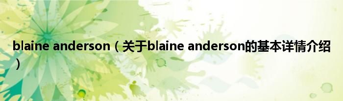 本文关于blaine anderson的基本详情介绍就讲解完毕,希望对大家有所帮助。