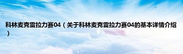 本文关于科林麦克雷拉力赛04的基本详情介绍就讲解完毕,希望对大家有所帮助。