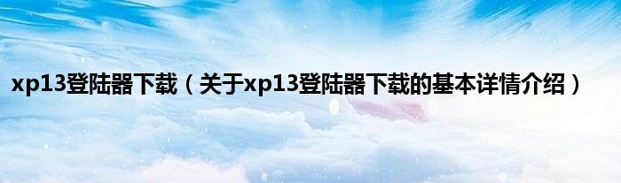 本文关于xp13登陆器下载的基本详情介绍就讲解完毕,希望对大家有所帮助。