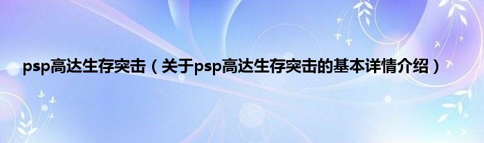 本文关于psp高达生存突击的基本详情介绍就讲解完毕,希望对大家有所帮助。