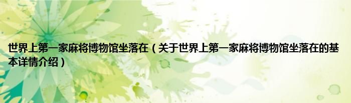 本文关于世界上第一家麻将博物馆坐落在的基本详情介绍就讲解完毕,希望对大家有所帮助。