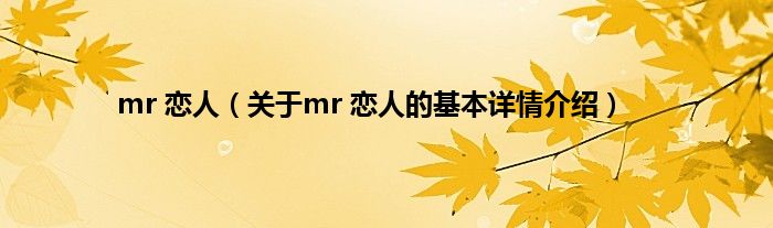 本文关于mr 恋人的基本详情介绍就讲解完毕,希望对大家有所帮助。