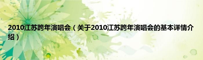 本文关于2010江苏跨年演唱会的基本详情介绍就讲解完毕,希望对大家有所帮助。
