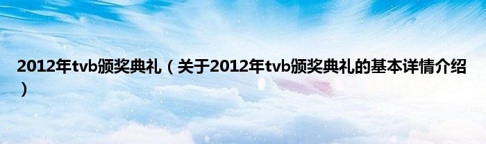 本文关于2012年tvb颁奖典礼的基本详情介绍就讲解完毕,希望对大家有所帮助。