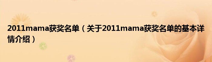 本文关于2011mama获奖名单的基本详情介绍就讲解完毕,希望对大家有所帮助。
