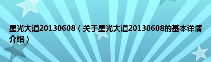 本文关于星光大道20130608的基本详情介绍就讲解完毕,希望对大家有所帮助。