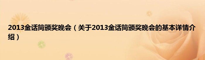 本文关于2013金话筒颁奖晚会的基本详情介绍就讲解完毕,希望对大家有所帮助。