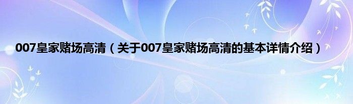 本文关于007皇家赌场高清的基本详情介绍就讲解完毕,希望对大家有所帮助。