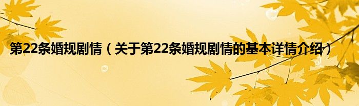 本文关于第22条婚规剧情的基本详情介绍就讲解完毕,希望对大家有所帮助。