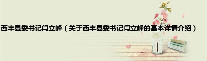 本文关于西丰县委书记闫立峰的基本详情介绍就讲解完毕,希望对大家有所帮助。