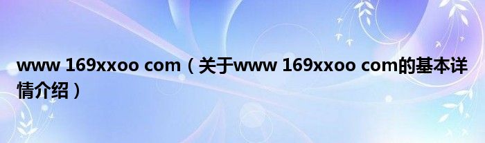 www 169xxoo com(关于www 169xxoo com的基本详情介绍)