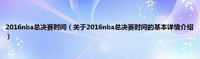 本文关于2016nba总决赛时间的基本详情介绍就讲解完毕,希望对大家有所帮助。