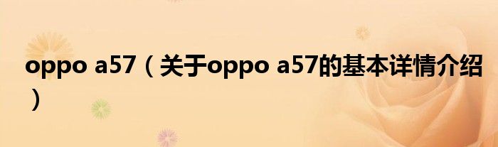 本文关于oppo a57的基本详情介绍就讲解完毕,希望对大家有所帮助。