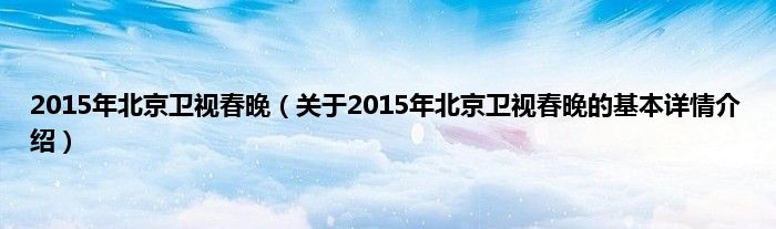 本文关于2015年北京卫视春晚的基本详情介绍就讲解完毕,希望对大家有所帮助。