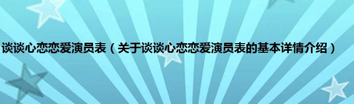 本文关于谈谈心恋恋爱演员表的基本详情介绍就讲解完毕,希望对大家有所帮助。
