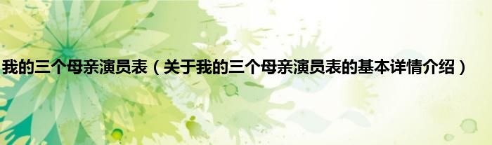 本文关于我的三个母亲演员表的基本详情介绍就讲解完毕,希望对大家有所帮助。