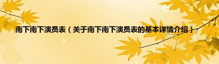本文关于南下南下演员表的基本详情介绍就讲解完毕,希望对大家有所帮助。