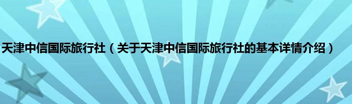 本文关于天津中信国际旅行社的基本详情介绍就讲解完毕,希望对大家有所帮助。