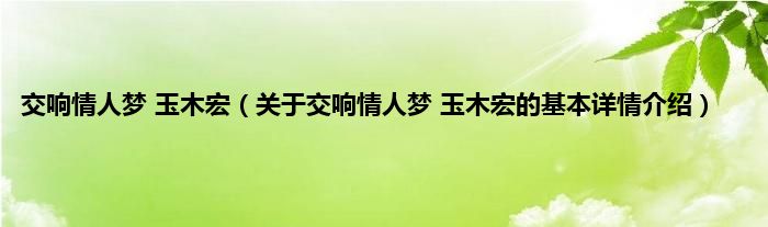 本文关于交响情人梦 玉木宏的基本详情介绍就讲解完毕,希望对大家有所帮助。