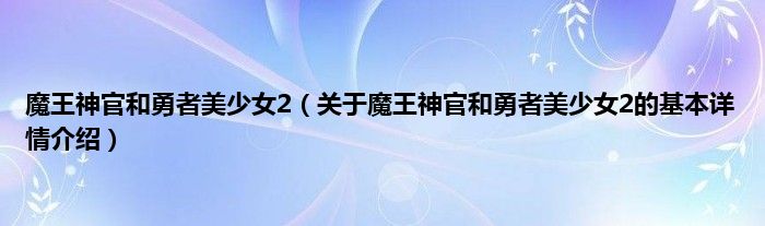 本文关于魔王神官和勇者美少女2的基本详情介绍就讲解完毕,希望对大家有所帮助。