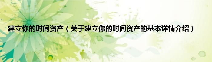 本文关于建立你的时间资产的基本详情介绍就讲解完毕,希望对大家有所帮助。
