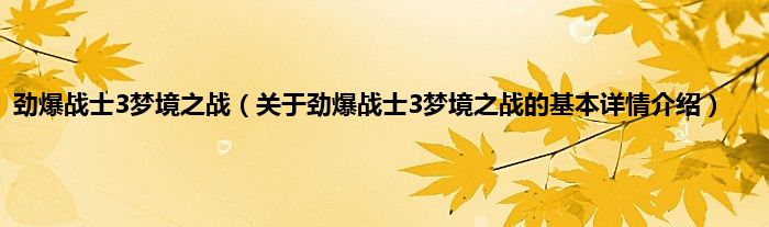 本文关于劲爆战士3梦境之战的基本详情介绍就讲解完毕,希望对大家有所帮助。