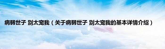 本文关于病弱世子 别太宠我的基本详情介绍就讲解完毕,希望对大家有所帮助。