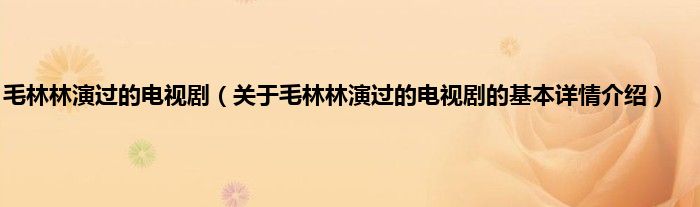 本文关于毛林林演过的电视剧的基本详情介绍就讲解完毕,希望对大家有所帮助。
