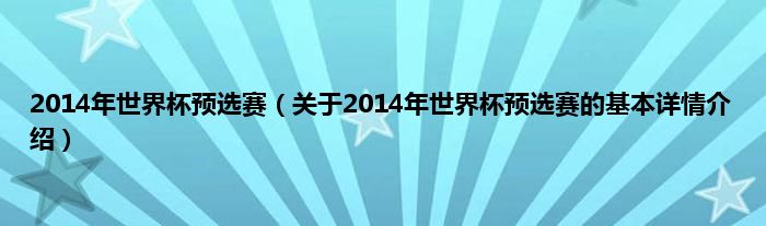 本文关于2014年世界杯预选赛的基本详情介绍就讲解完毕,希望对大家有所帮助。