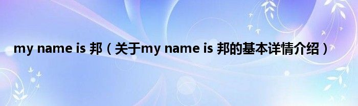 本文关于my name is 邦的基本详情介绍就讲解完毕,希望对大家有所帮助。