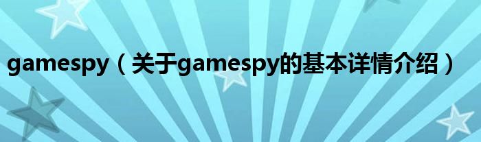 本文关于gamespy的基本详情介绍就讲解完毕,希望对大家有所帮助。