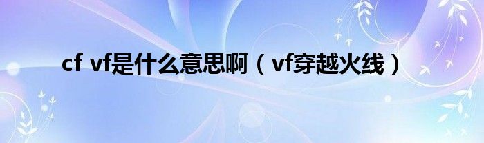 大家好,小问来为大家解答以上问题。cf vf是什么意思啊,vf穿越火线这个很多人还不知道,现在让我们一起来看看吧!