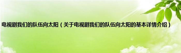 本文关于电视剧我们的队伍向太阳的基本详情介绍就讲解完毕,希望对大家有所帮助。